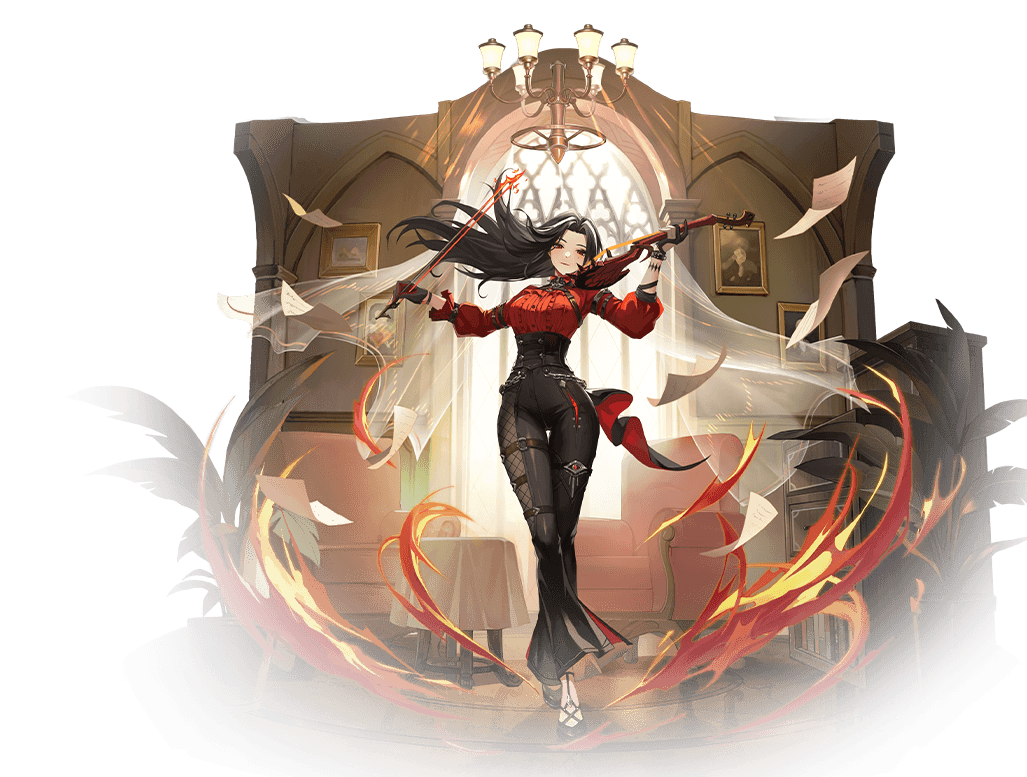 Âm Luật Rực Cháy Gây sát thương bằng 126/164% sức tấn công lên tất cả kẻ địch và có 50/80% tỷ lệ gây hiệu ứng Giảm phòng thủ