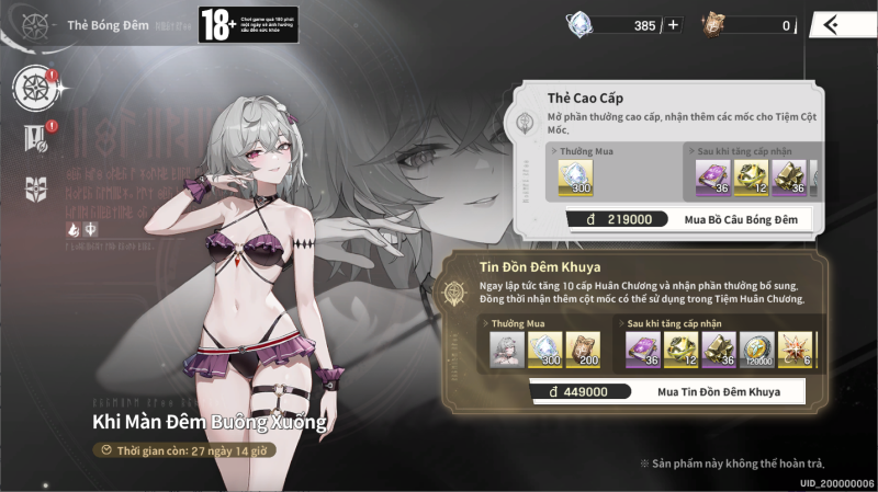 • Sau khi mua, có thể nâng cấp lên Thẻ Bóng Đêm - Tin Đồn Đêm Khuya.
