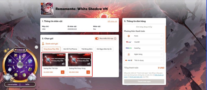• Sứ Giả phải chọn chính xác gói nạp có trong danh sách mới có thể nhận được lượt quay tương ứng.
