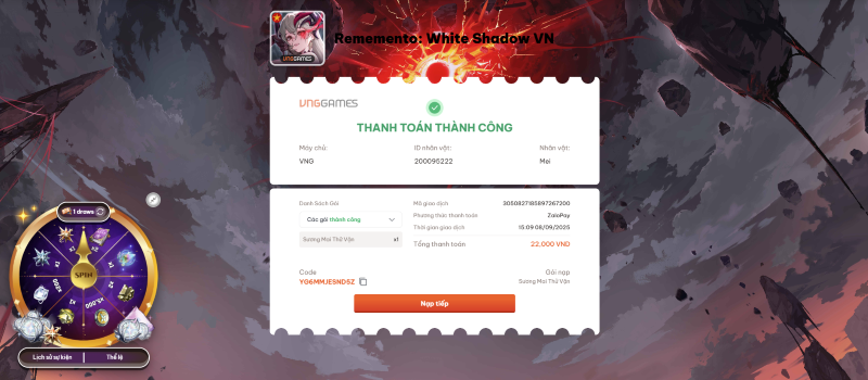 • After successfully completing the transaction at the VNG store, the Lucky Wheel will appear directly in the store interface.