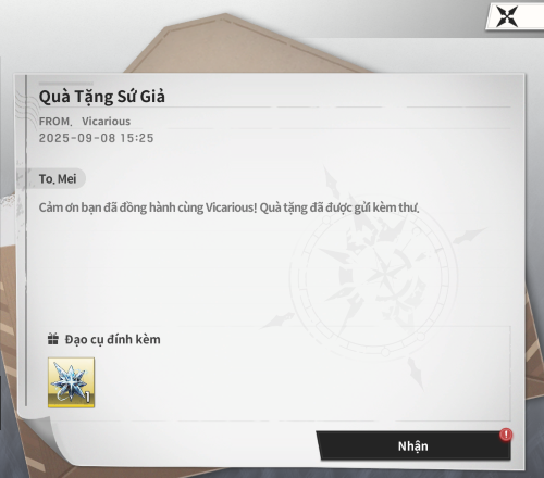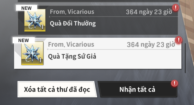 Quà sẽ hiển thị như ảnh. Sứ Giả vào game check mục Thư để nhận quà.